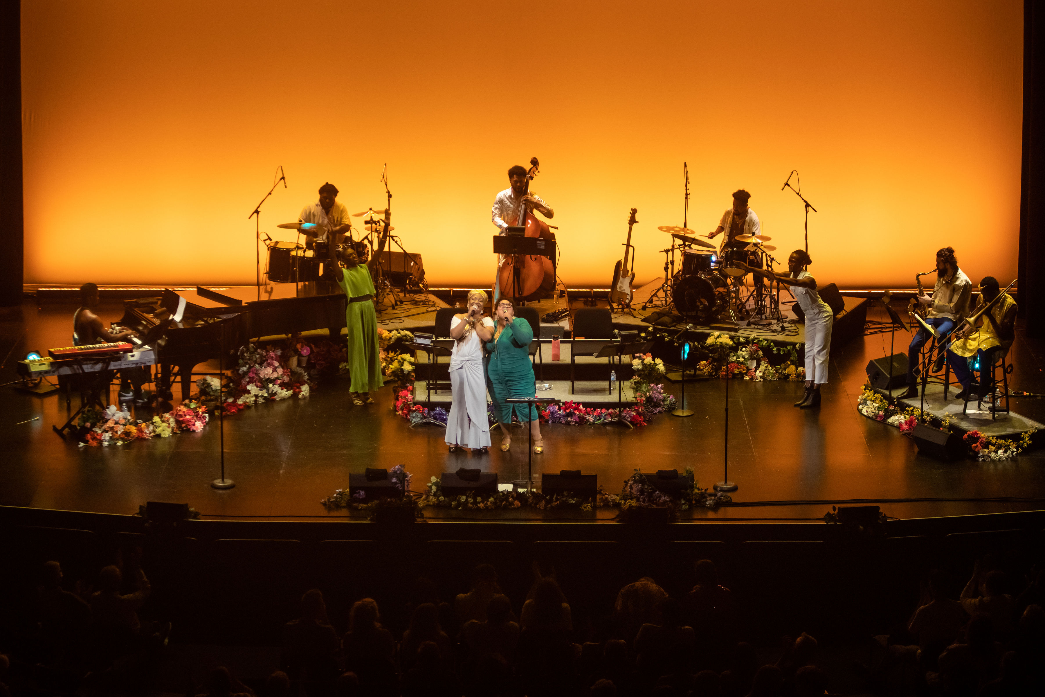 For one night only, the Burlington Discover Jazz Festival audience was treated to an unforgettable evening of music, striking visuals, and insightful storytelling, spanning multiple genres and generations. Backed by a phenomenal seven-piece band under Anthony’s musical direction and joined by seven special guests, the cast brought the Flynn Main Stage to life with song, narration, and imagery that illuminated the many threads making up the vast universe of jazz.