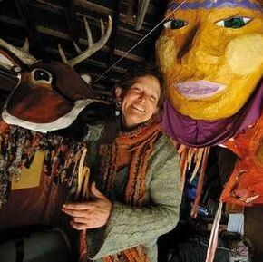 Janice Walrafen is a multi media artist/sculptor/puppet maker/teacher/community celebrant living along the Winooski River in Central Vermont. For almost 4 decades she has been creating larger than life puppets, masks and costumes to celebrate the cycles of the seasons with community pageantry. It began in 1987 with the All Species Project, which is founded on the principles of ecology, and celebrating the interdependence of all life. Much of what she does can be seen at: https://www.alltogethernowvt.org/